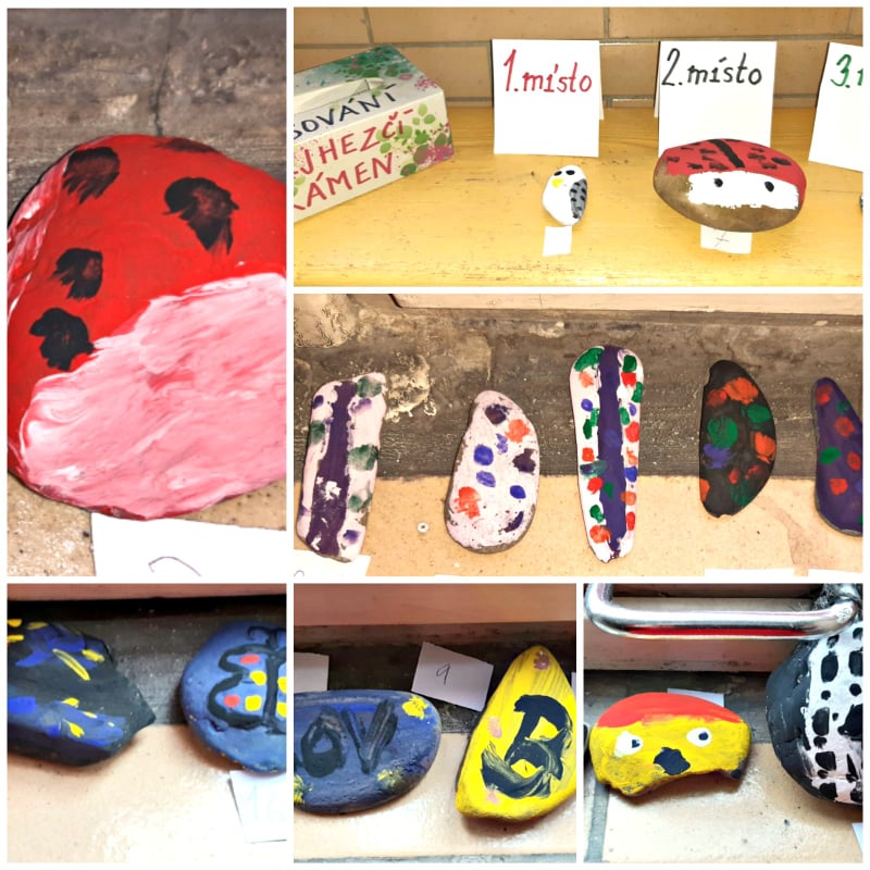 Týden se u třeťáků nesl v duchu poznávání nerostů a hornin. Na pomoc nám byly názorné pomůcky, u kterých jsme zkoumali barvu, lesk, složení, tvrdost, štěpnost, vryp a magnetismus. Nejvíce byly děti nadšené při výtvarce, kdy si mohly dle své fantazie pomalovat donesené kameny. Sbírku jsme pak vystavili na chodbě a nechali vyhodnotit jiné třídy. Posuďte sami, že ve třídě jsou velké talenty!!