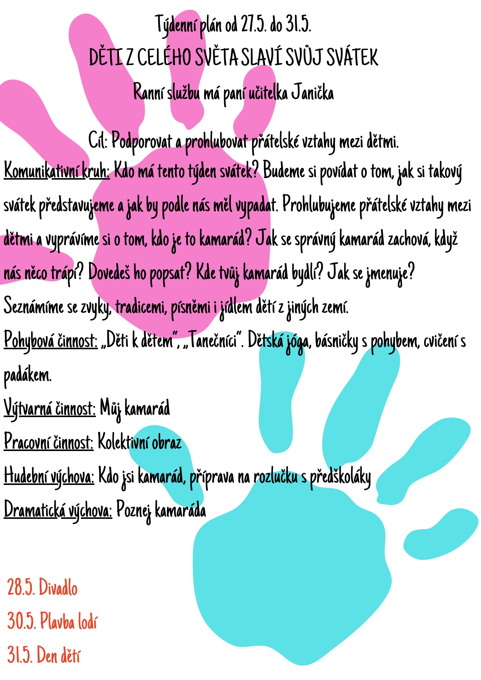 Týdenní program 27.05. - 31.05.2024