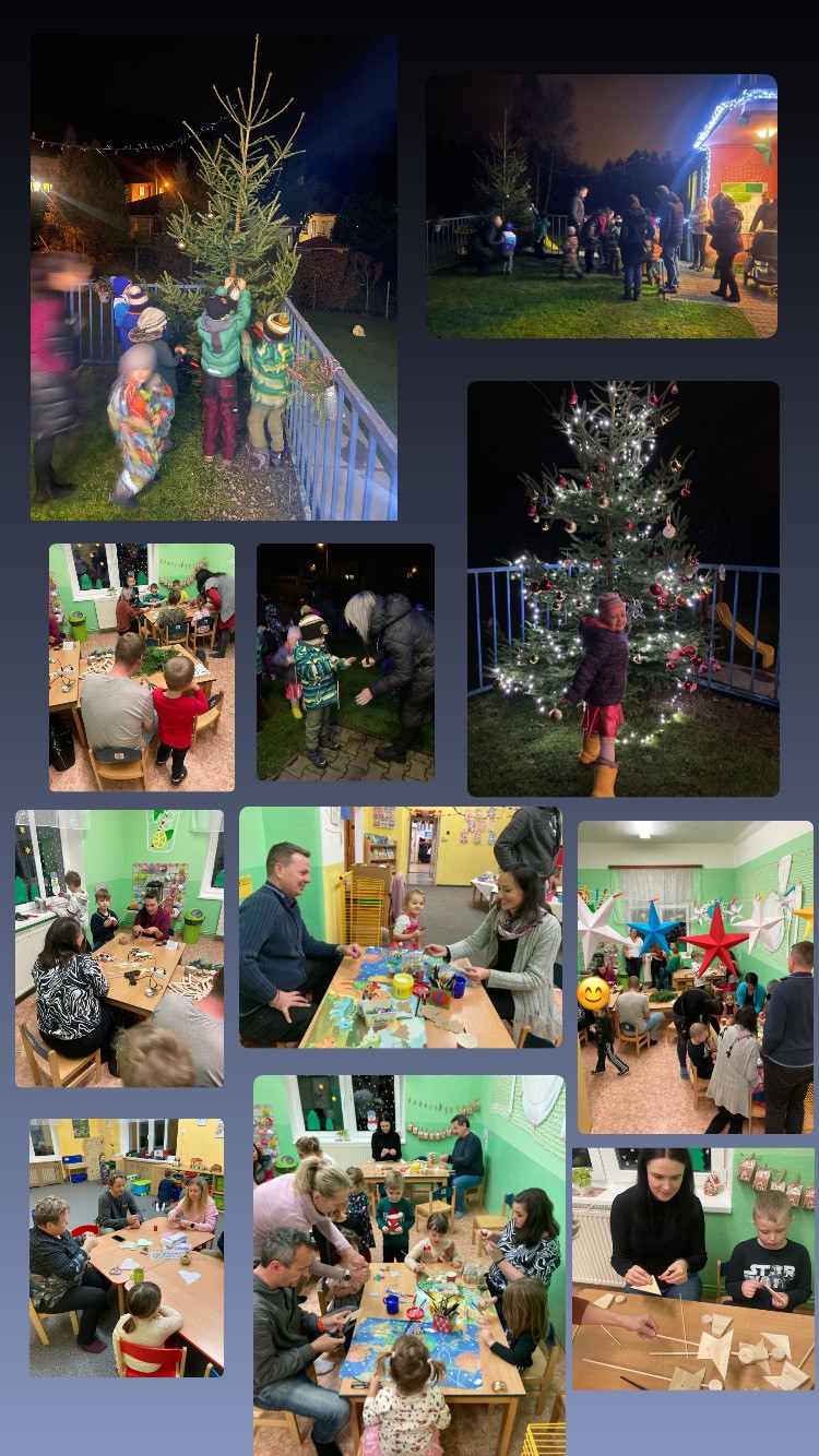 Během tohoto odpoledne se třída naší mateřské školky proměnila na kutilské koutky, ve kterých měli rodiče možnost vyzkoušet mnoho tvořivých aktivit. Při kávě a čaji si mohli vyrobit zápich do květináče, ozdobu z jehličí, ušít jehelníček, nebo zhotovit ze dřeva andílka. Na závěr tvořivého odpoledne jsme ozdobili stromeček na předzahrádce a zazpívali si vánoční koledy, během kterých se rozsvítil stromeček. Děkujeme za hojnou účast a příjemně strávený čas.