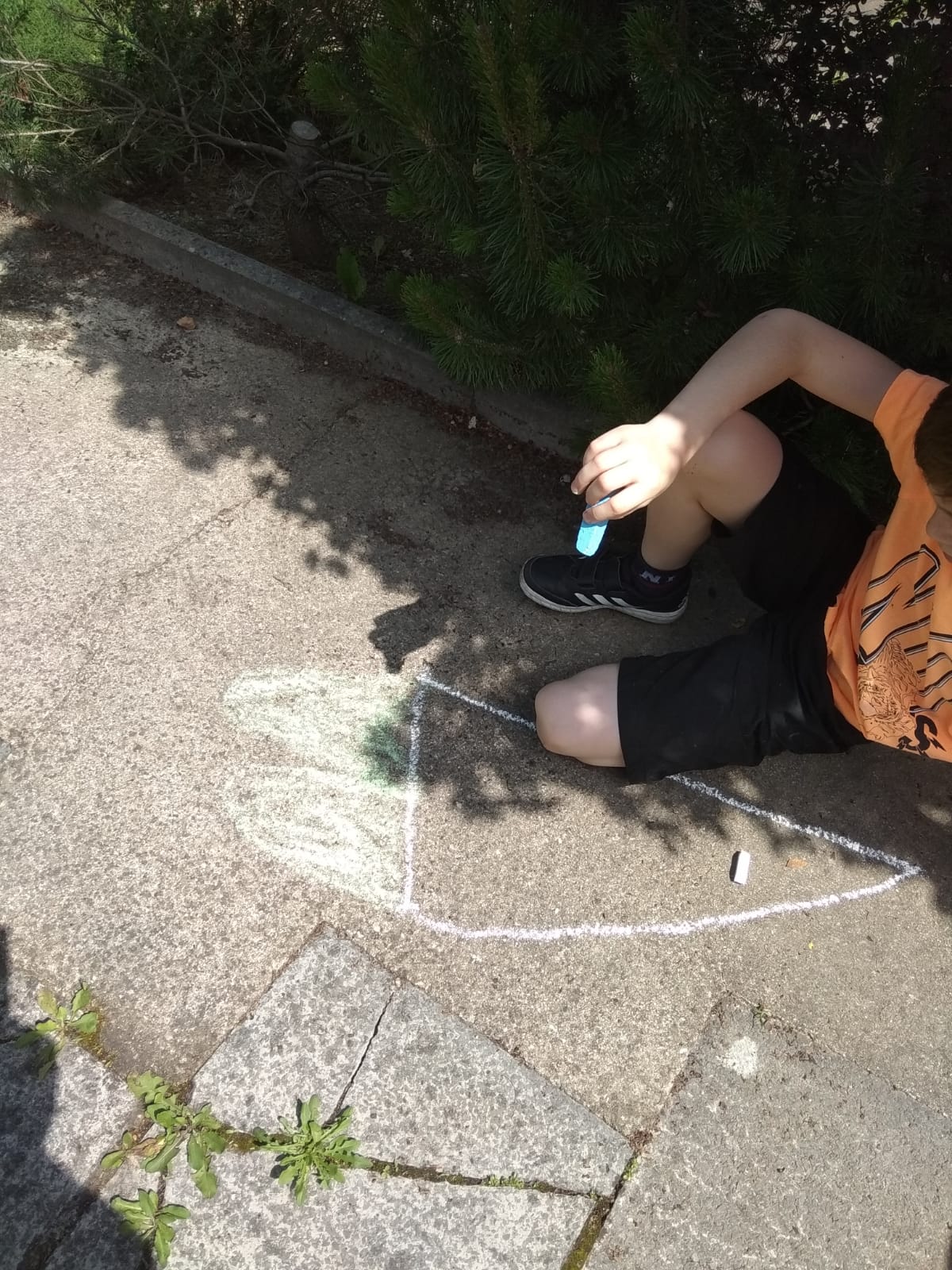 Dnešní družinový veselý chodník byl ve znamení horkého počasí. Malby dětí se opravdu povedly a pro všechny byla připravena odměna ve formě mísy plné jahod. Venkovní bazén sice nemáme, ale svůj účel splnila i sprcha, kterou nám pan školník připravil.